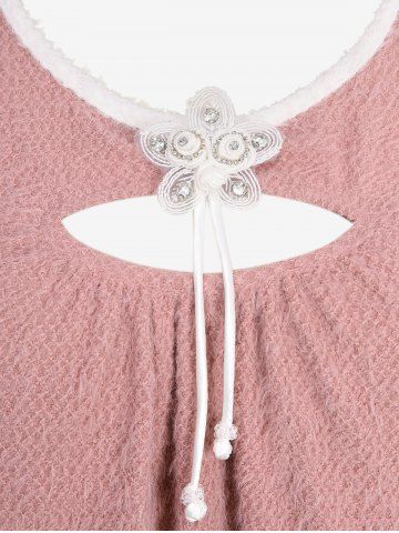Plus Size Sparkling Glitter Floral Buckle Cut Out Panel Contrast Binding Long Sleeves Fluffy Pullover Knit Sweater - Light Pink - 3x | Us 22-24