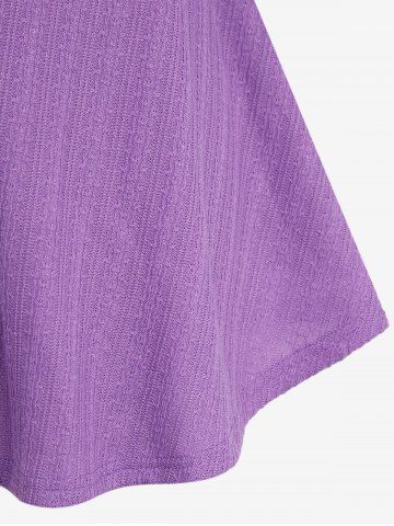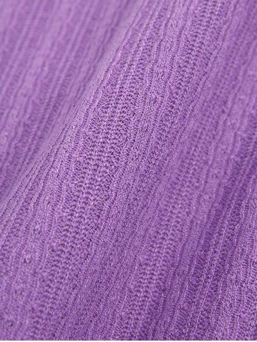 Plus Size Turn-down Collar Fur Trim Full Zipper Textured Square Buckle Belt Long Sleeves Knitted Top - Purple - L | Us 12