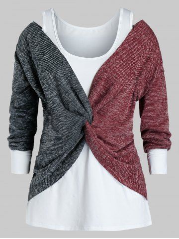 B*****b5Plus Size Twisted Two Tone Bicolor Sweater and Tank Top SetColor: BLACK Size: 4XGreat value...would definitely recommend! The fabric is so soft and comfortable...Beautiful, exactly as pictured. Amazing quality! fits exactly by size! Cute!