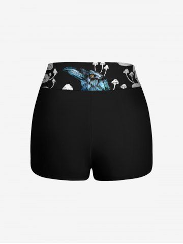 Fashion Eagle Mushroom Print Hawaii Boyshort Tankini Bottom - Black - Xs