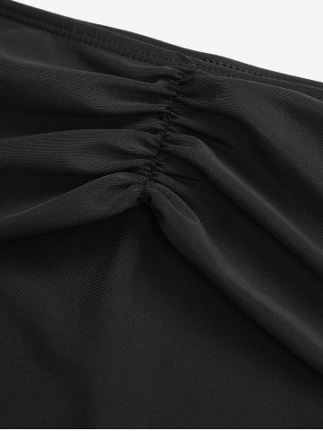 Plus Size Fold-over Ruched Solid High Waisted Bikini Bottom - Black - 1x | Us 14-16