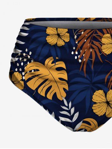 Tropical Leaves Branch Floral Print Hawaii Swim Bottom - Deep Blue - 1x