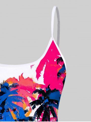 Swim Tops > 3D Colorful Coconut Tree Printed Spaghetti Strap Backless Tankini Top (Adjustable Shoulder Strap)