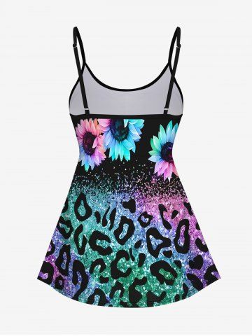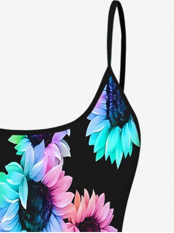 3D Flower Figure Sparkling Sequin Print Spaghetti Strap Backless Tankini Top - Black - 1x