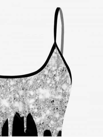 a*****y53D Sparkling Sequin Glitter Print Open Back Strap Tankini TopColor: BLACK Size: 1Xso cute.