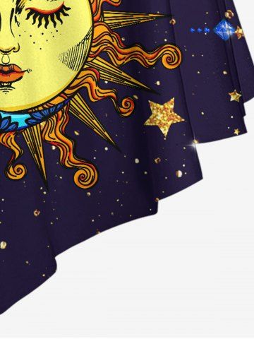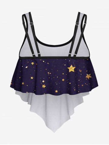 3D Sun Moon Star Glitter Print Overlay Spaghetti Strap Tankini Top - Deep Blue - Xs