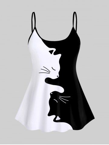 k*****l5Cat Print Two Tone Padded Tankini Top and Boyshorts Modest Tankini SwimsuitColor: BLACKSuper cute! I wasn’t expecting it to fit and it dies. It’s a bit tight but I went small as I’m losing weight from bypass surgery.