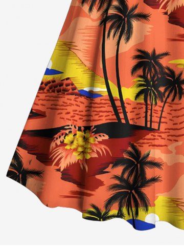 Coconut Tree Floral Sea Beach Print Hawaii Twist Halter Backless Tankini Top - Dark Orange - 2x