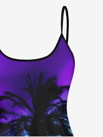 Coconut Tree Tie Dye Ombre Sky Print Hawaii Tankini Top(Adjustable Shoulder Strap) - Purple - M