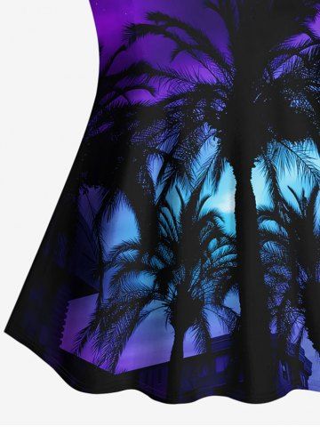 Coconut Tree Tie Dye Ombre Sky Print Hawaii Tankini Top(Adjustable Shoulder Strap) - Purple - 1x