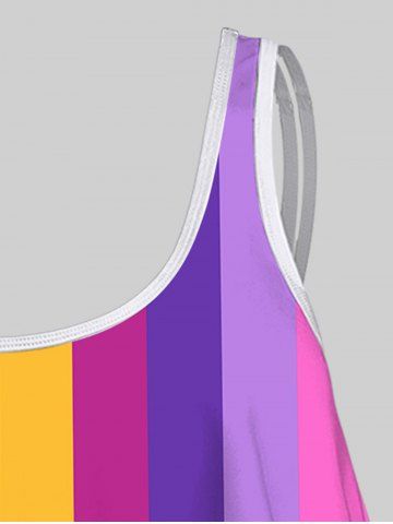Colorblock Color Stripes Print Spaghetti Strap Tankini Top - Multi-a - 1x