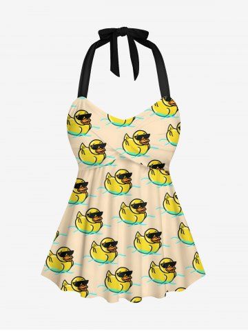 Cool Duck River Print Hawaii Twist Halter Backless Tankini Top - Beige - Xs