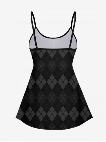 Crown Skulls Heart Skeleton Wings Envelope Print Valentine's Day Tankini Top - Black - 2x