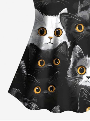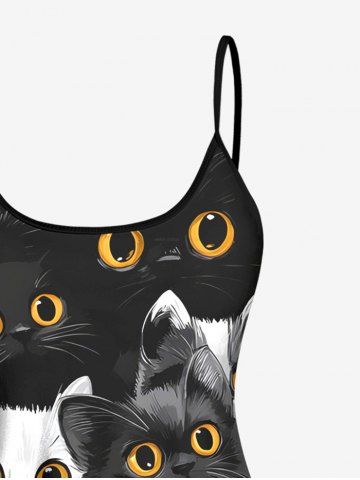Cute Two Tone Cat Print Tankini Top(Adjustable Shoulder Strap) - Black - S
