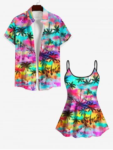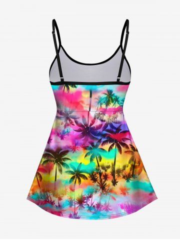 Hawaii Fashion Colorful Ombre Galaxy Coconut Tree Print Backless Tankini Top(Adjustable Shoulder Strap) - Multi-a - Xs