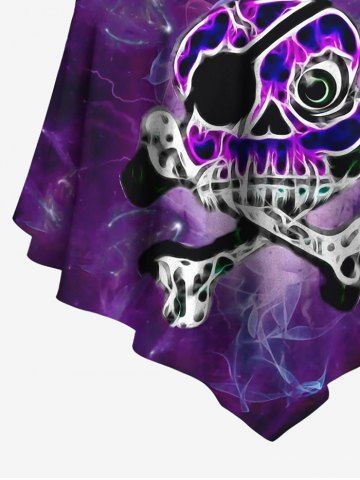 Fashion Skull Pirate Fire Flame Bone Ombre Galaxy Print Curved Hem Asymmetric Tankini Top(Adjustable Shoulder Strap) - Black - 5x