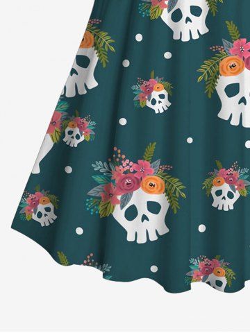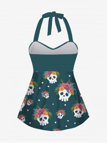 Fashion Skulls Wreath Snowflake Print Twist Backless Halter Tankini Top - Green - Xs