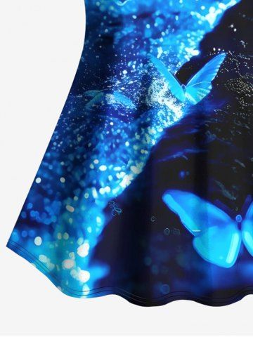 Glitter Butterfly Sea Print Hawaii Tankini Top(Adjustable Shoulder Strap) - Blue - 6x