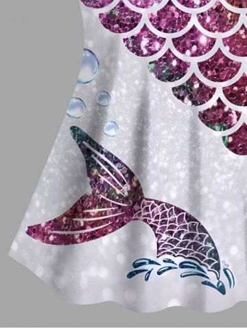 Glitter Ombre Fish Scale Bubble Sea Print Hawaii Tankini Top(Adjustable Shoulder Strap) - Purple - 4x