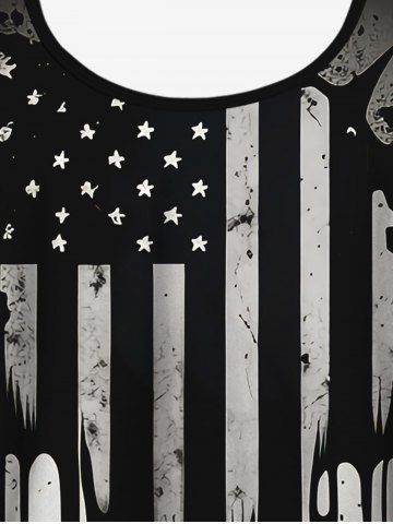 Gothic Distressed American Flag Print Flounce Bikini Top - Black - 2x