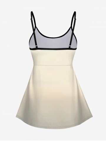 Moon Eagle Lantern Leaf Tree Print Tankini Top - Light Coffee - 5x