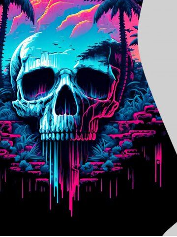 Plus Size Coconut Tree Ombre Skull Mountain Cave Print Tankini Top(Adjustable Shoulder Strap) - Black - 1x