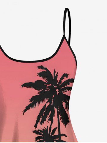 Plus Size Coconut Tree Surfer Print Hawaii Ombre Tankini Top - Red - Xs