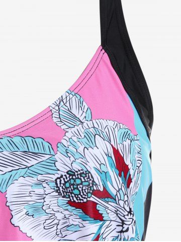 Swim Tops > Plus Size Floral Print Colorblock Padded Swim Tankini Top