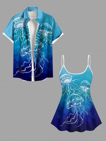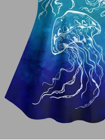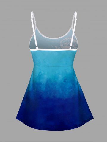 Plus Size Jellyfish Ombre Print Hawaii Tankini Top(Adjustable Shoulder Strap) - Blue - 2x