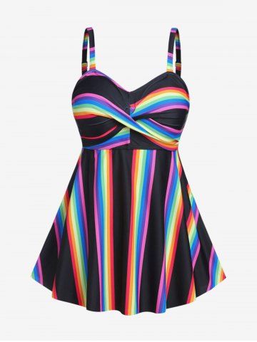 j*****k5Plus Size Lace Up Striped Knitted Top and Solid Tank Top SetColor: BLUE Size: 3X | US 22-24This is such a fun top. With all the colors in the sweater it can go with anything and the way it flares out at the bottom is so comfy.