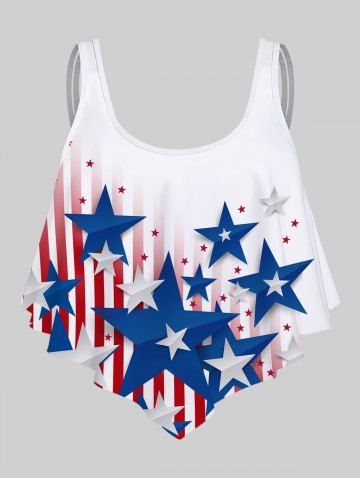 Patriotic American Flag Print Tankini Top - Blue - 3x