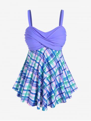 s*****e5Plus Size Plaid Twist Padded Backless Tankini Top SwimsuitColor: PURPLE Size: 1X | US 14-16I’m very pleased with this colourful swim top. The colours are beautiful and it fits me perfectly like it was made for me!