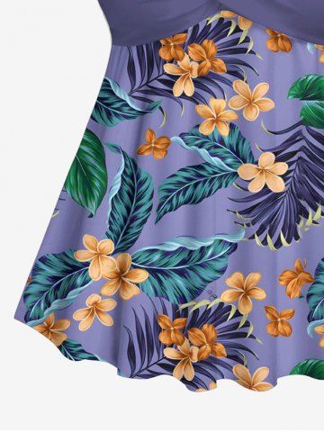 Plus Size Tropical Leaf Flower Print Halter Hawaii Tankini Top - Purple - 6x
