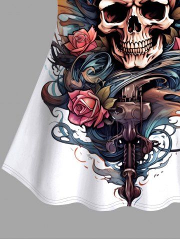 Skull Rose Flower Sea Waves Pirate Print Hawaii Cruise Tankini Top(Adjustable Shoulder Strap) - White - 6x