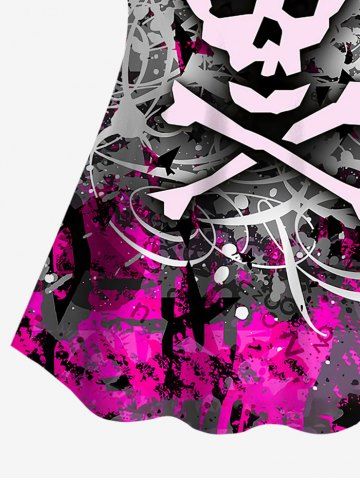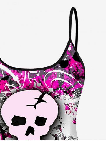Skull Skeleton Star Paint Splatter Graffiti Print Tankini Top - Black - 1x
