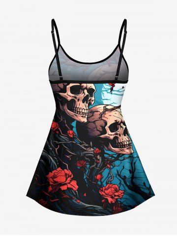 Tree Branch Floral Moon Skull Print Tankini Top(Adjustable Shoulder Strap) - Multi-a - M