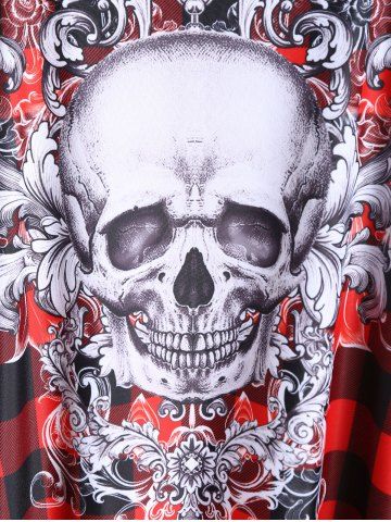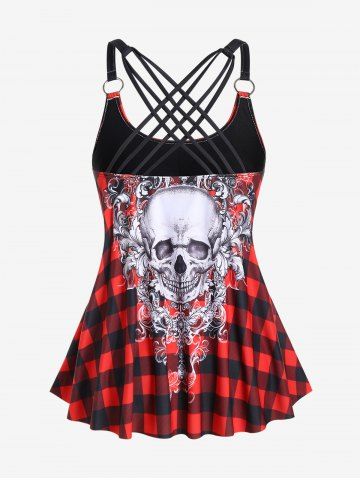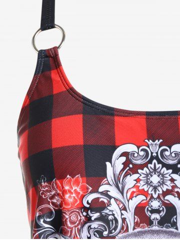 Plus Size Swimwear > Gothic Skull Plaid Padded Boyleg Strappy Modest Tankini Swimsuit