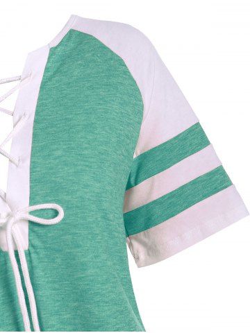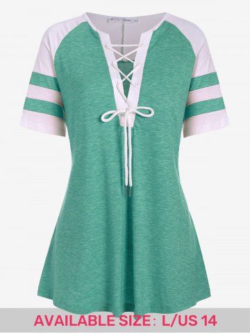 B*****b5Plus Size Lace Up Two Tone Curved Tunic TeeColor: RED Size: 3XGreat value...would definitely recommend! The fabric is so soft and comfortable...Beautiful, exactly as pictured. Amazing quality! fits exactly by size! Cute top!