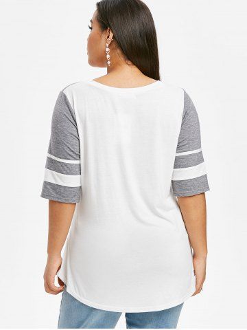 B*****s5Curved Hem Stripes Panel Colorblock Plus Size TopColor: WHITE Size: 3XVery sweet gray and white baseball top. The material is soft and comfortable, perfect fit, shipped fast and packaged nicely. High quality design and made very well!