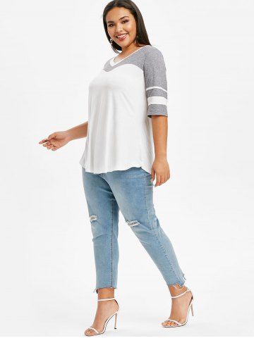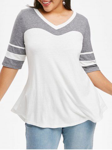 Curved Hem Stripes Panel Colorblock Plus Size Top - White - 3x