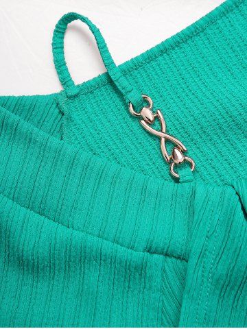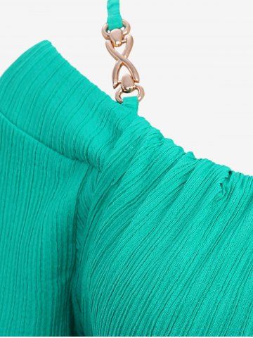 Plus Size Asymmetric Collar with Chain Strappy Textured Ribbed Solid Top - Green - 1x | Us 14-16