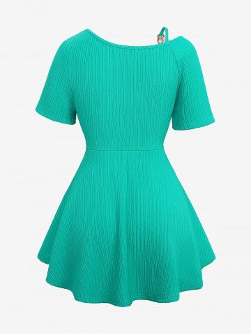 Plus Size T-shirts > Plus Size Asymmetric Collar with Chain Strappy Textured Ribbed Solid Top