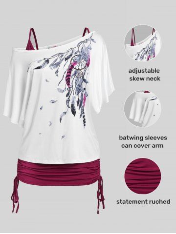 c*****35Plus Size & Curve Batwing Sleeve Dreamcatcher Print Skew Neck Tee and Cinched Tank Top SetColor: WHITE Size: 3XGreat quality! Comes in 2 pieces! The top shirt kinda baggy but the under shirt fits tight... Wish top shirt was smaller but still very pretty