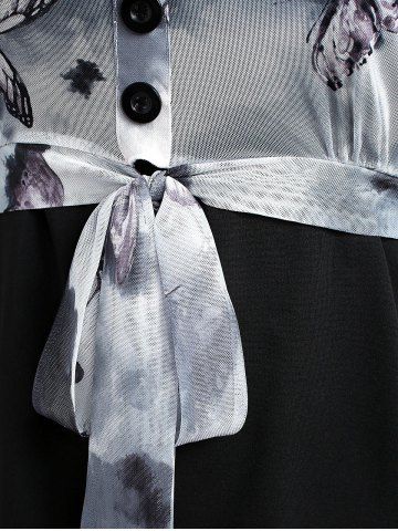 A*****a5Plus Size Ink Painting Butterfly Print Lace Up Buttons Short Sleeves T-shirtColor: BLACK Size: 1X | US 14-16This was super soft and comfortable. It fit me perfectly and looked so cute on. I didn’t need anything under this to cover cleavage.