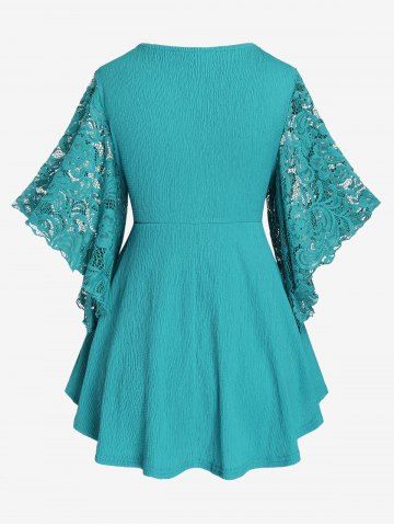 J*****a5Keyhole Lace Butterfly Sleeve Tee and Flare Pants Plus Size Summer OutfitColor: MULTIpants were out of stock, but I love the shirt. the fabric is textured and the clasp at the top looks great. It is a bit revealing so I need to wear an undershirt at work. I'm very happy with this purchase.