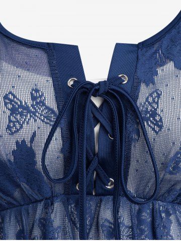 Plus Size Butterfly Lace Overlay Lace-up 2 in 1 Tee - Blue - 2x | Us 18-20