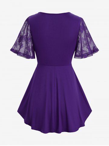 Plus Size Butterfly Lace Overlay Lace-up 2 in 1 Tee - Purple - 1x | Us 14-16