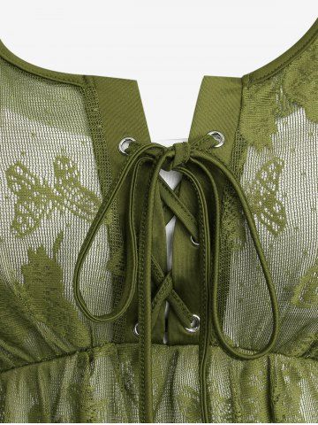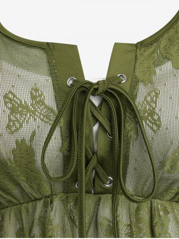 Plus Size Butterfly Lace Overlay Lace-up 2 in 1 Tee - Green - 5x | Us 30-32