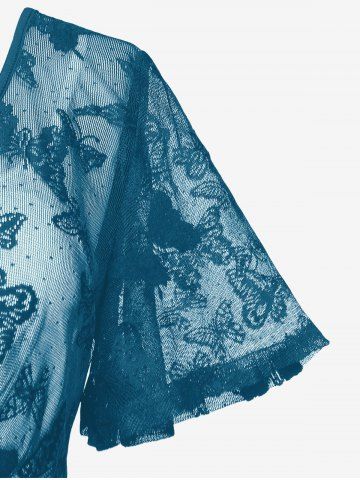 Plus Size Butterfly Lace Overlay Lace-up 2 in 1 Tee