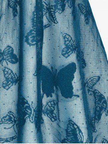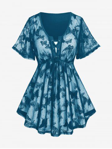 Plus Size Butterfly Lace Overlay Lace-up 2 in 1 Tee - Midnight Blue - 3x | Us 22-24